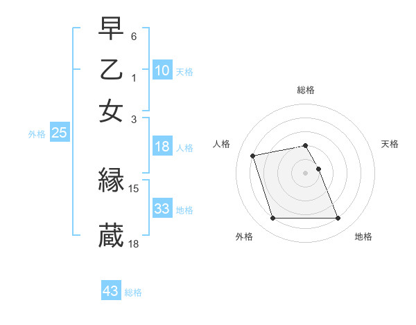 早乙女 縁蔵さんを姓名の画数から五運を鑑定