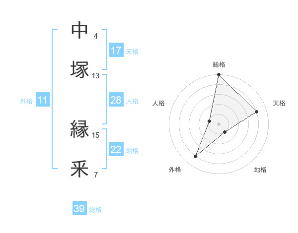 中塚 縁釆さんを姓名の画数から五運を鑑定