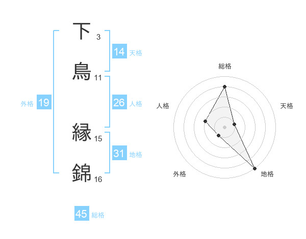 下鳥 縁錦さんを姓名の画数から五運を鑑定