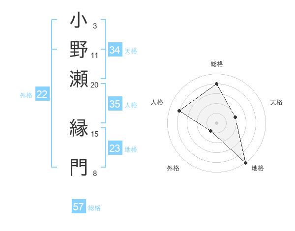 小野瀬 縁門さんを姓名の画数から五運を鑑定