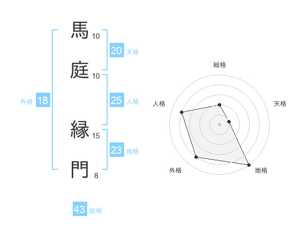 馬庭 縁門さんの総格は43画の2点!