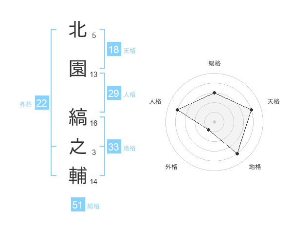 北園 縞之輔さんを姓名の画数から五運を鑑定