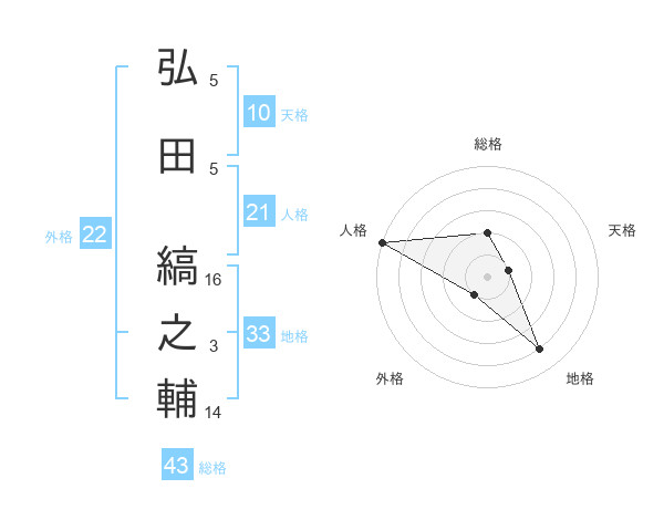 弘田 縞之輔さんを姓名の画数から五運を鑑定