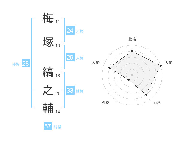 梅塚 縞之輔さんを姓名の画数から五運を鑑定