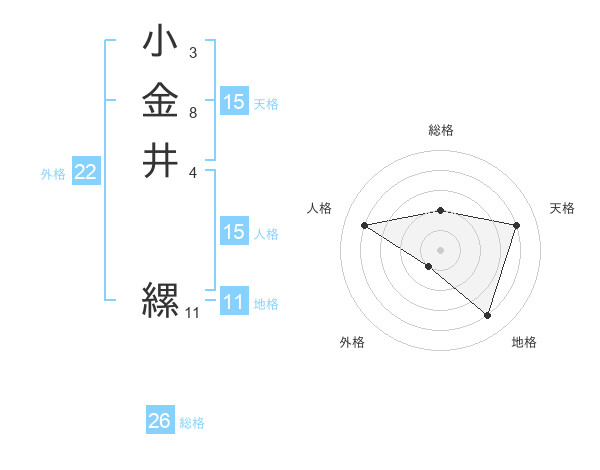 小金井 縲さんの天格は15画の4点!