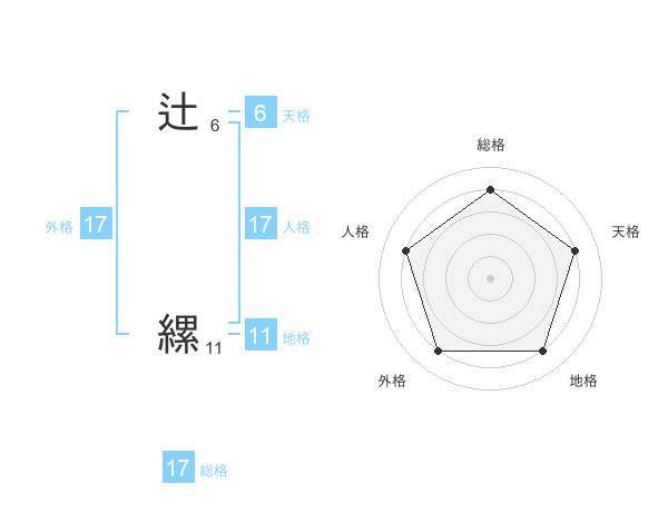 辻 縲さんの外格は17画の4点!
