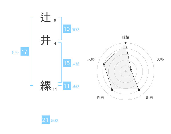 辻井 縲さんの総格は21画の5点!