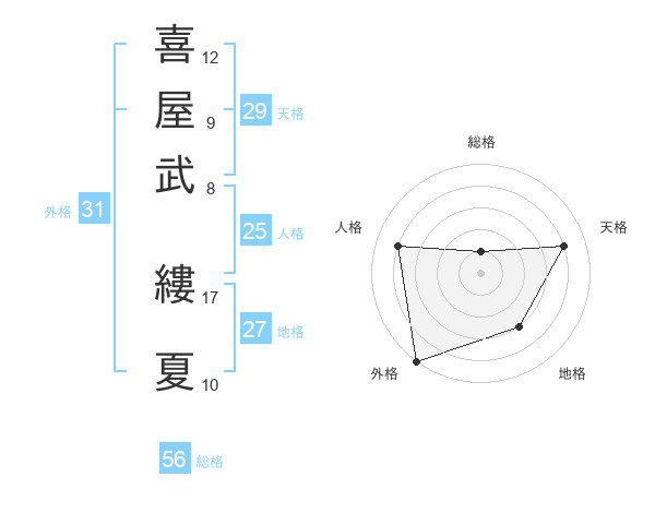 喜屋武 縷夏さんを姓名の画数から五運を鑑定