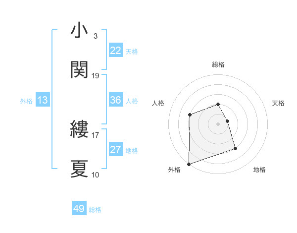 小関 縷夏さんを姓名の画数から五運を鑑定
