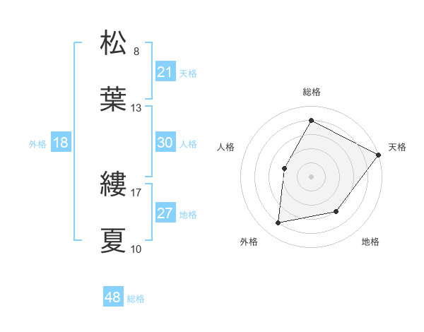松葉 縷夏さんを姓名の画数から五運を鑑定