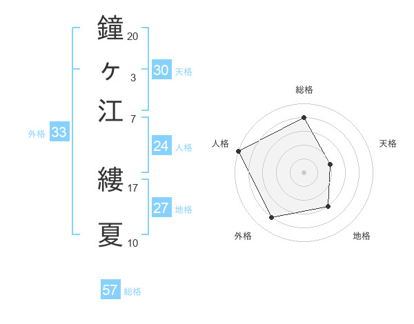 鐘ヶ江 縷夏さんの外格は33画の4点