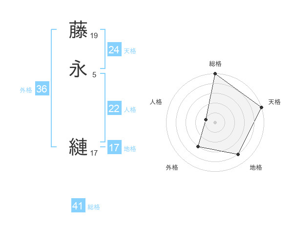 藤永 縺さんの天格は24画の5点!