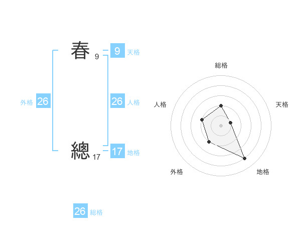 春 總さんの地格は17画の4点!