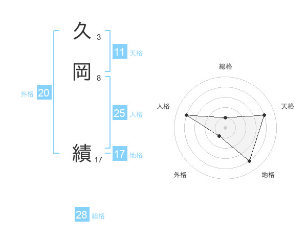 久岡 績さんの総格は28画の1点!