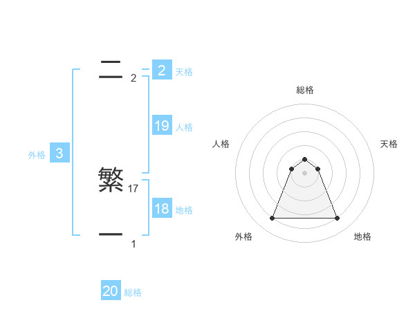 二 繁一さんの総格は20画の1点!