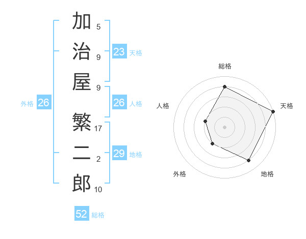加治屋 繁二郎さんを姓名の画数から五運を鑑定