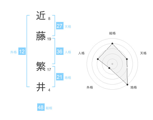 近藤 繁井さんを姓名の画数から五運を鑑定