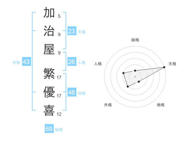 加治屋 繁優喜さんの天格は23画の5点!