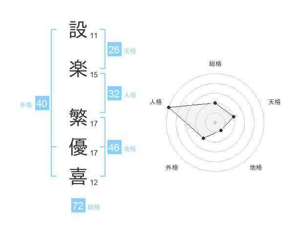 設楽 繁優喜さんの総格は72画の2点
