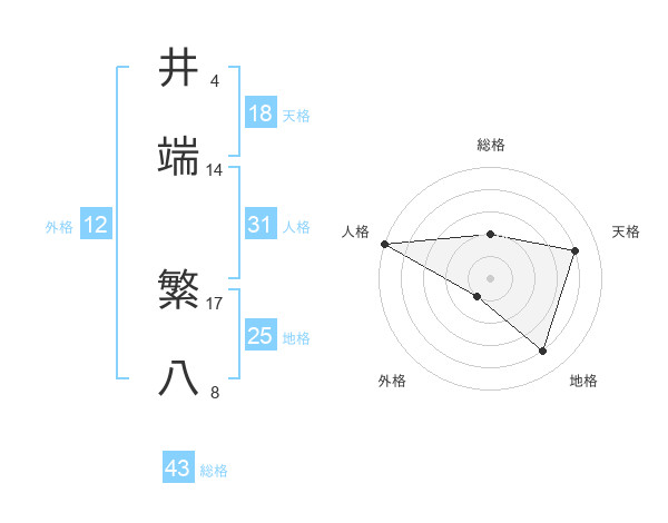 井端 繁八さんの総格は43画の2点!