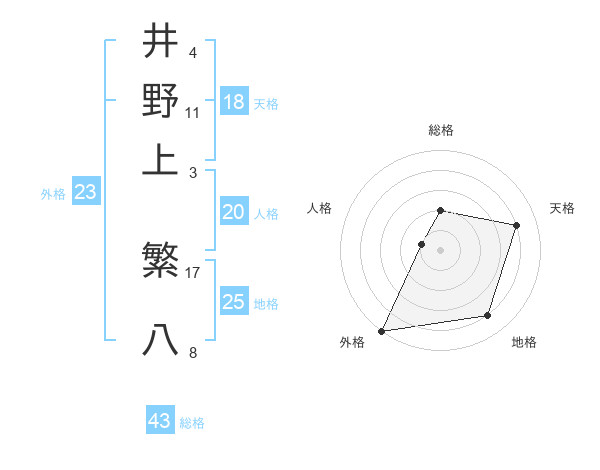 井野上 繁八さんを姓名の画数から五運を鑑定