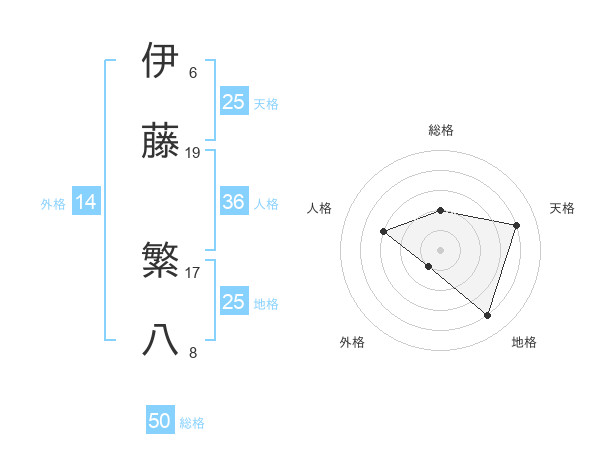 伊藤 繁八さんの総格は50画の2点!