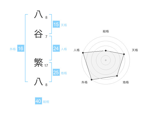 八谷 繁八さんを姓名の画数から五運を鑑定