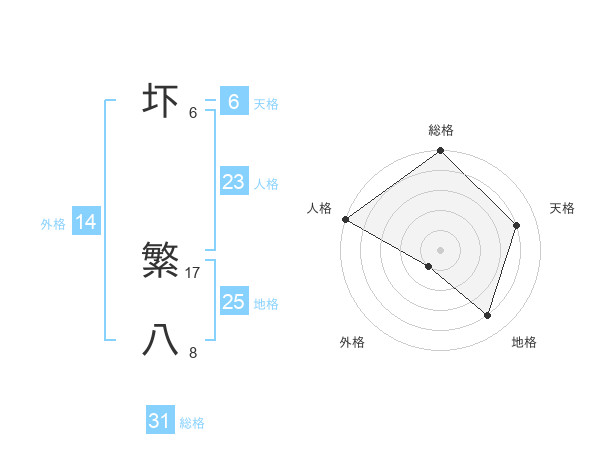 圷 繁八さんの総格は31画の5点!