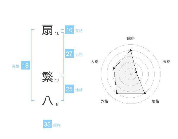 扇 繁八さんの総格は35画の4点!