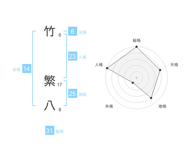 竹 繁八さんの総格は31画の5点!
