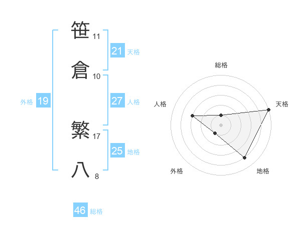 笹倉 繁八さんを姓名の画数から五運を鑑定