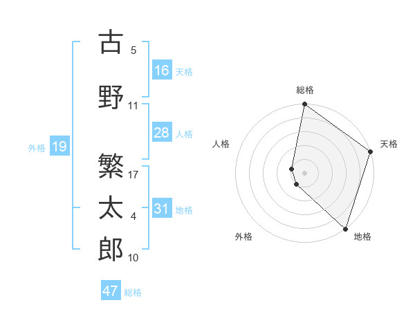 古野 繁太郎さんを姓名の画数から五運を鑑定