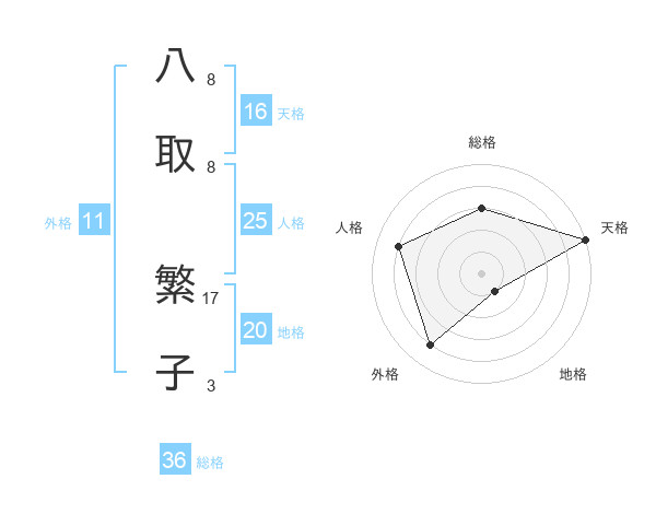 八取 繁子さんの外格は11画の4点!