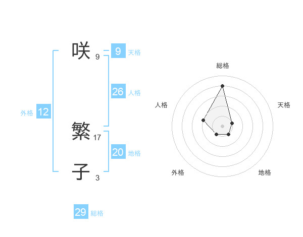 咲 繁子さんの総格は29画の4点!