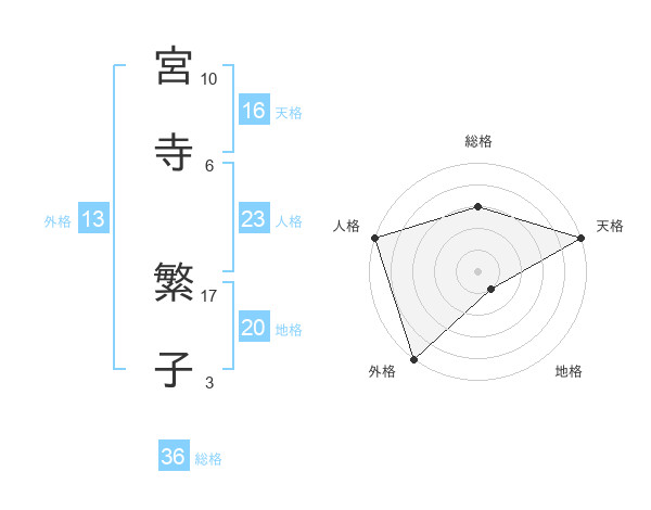 宮寺 繁子さんを姓名の画数から五運を鑑定