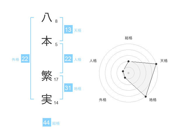 八本 繁実さんの総格は44画の2点!