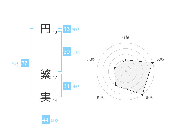 円 繁実さんの総格は44画の2点!