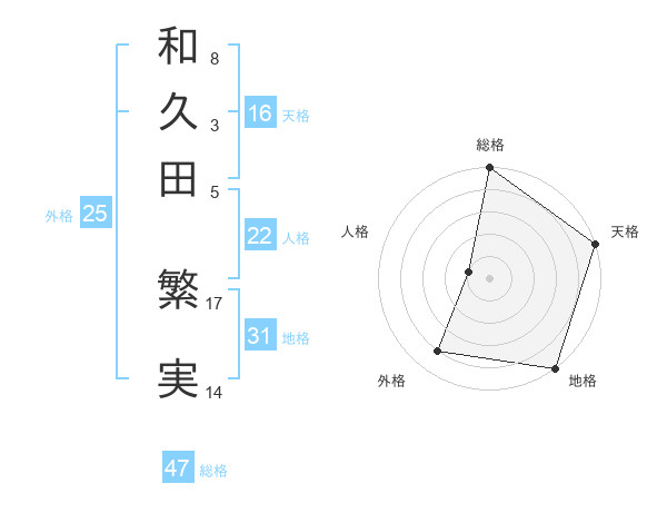 和久田 繁実さんを姓名の画数から五運を鑑定