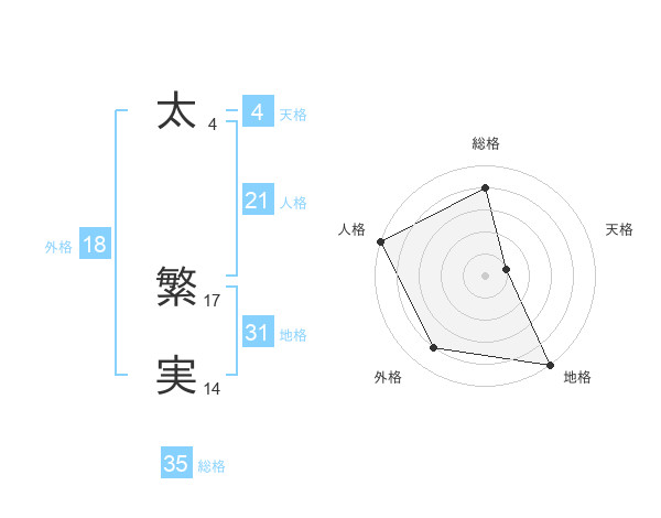 太 繁実さんの総格は35画の4点!