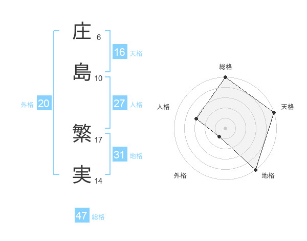 庄島 繁実さんの総格は47画の5点!