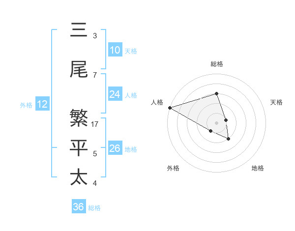 三尾 繁平太さんを姓名の画数から五運を鑑定