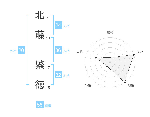 北藤 繁徳さんの天格は24画の5点!