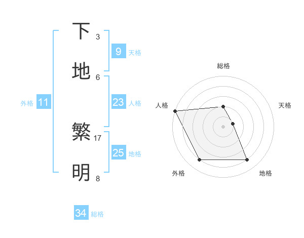 下地 繁明さんの総格は34画の2点!