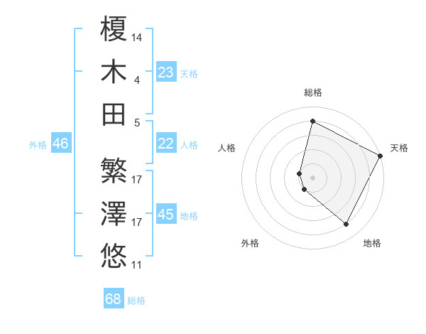 榎木田 繁澤悠さんの総格は68画の4点