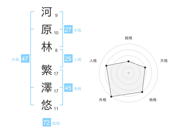 河原林 繁澤悠さんを姓名の画数から五運を鑑定