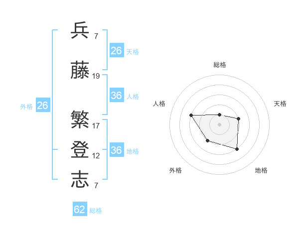 兵藤 繁登志さんの地格は36画の3点!