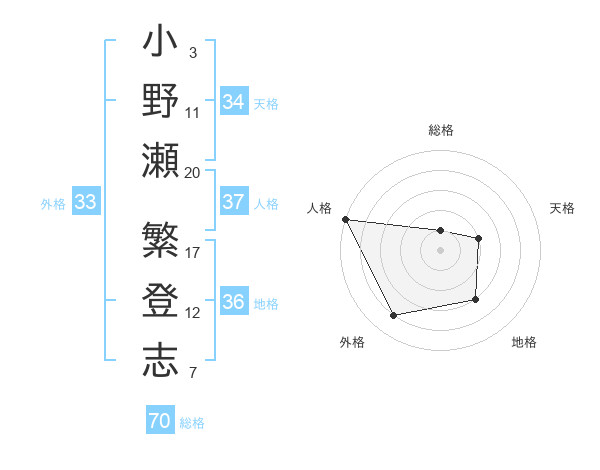 小野瀬 繁登志さんの総格は70画の1点