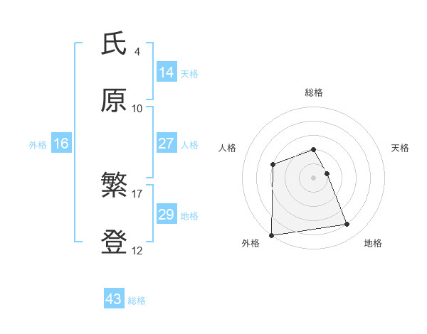 氏原 繁登さんを姓名の画数から五運を鑑定