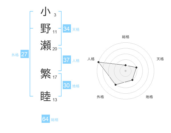小野瀬 繁睦さんを姓名の画数から五運を鑑定