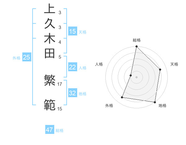 上久木田 繁範さんの総格は47画の5点!